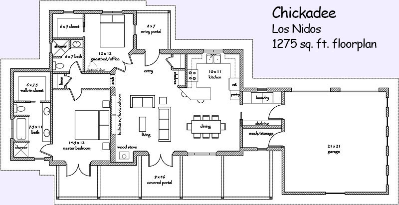 Choose from our 1275 (Chickadee) or 1425 sq. ft. (Bluebird) or (Little House) 990 sq. ft. architect-designed floor plans or design your custom home. Then choose your favorite pine-forested home site ranging in size from .29 to two+ acres. Next, decide how to "feather your nest" with your choice of interior finishes! Choose your favorite home style... Southwestern/Pueblo flat roof or Northern New Mexico pitched roof designs. Or... design your own home. Contemporary designs are also allowed.