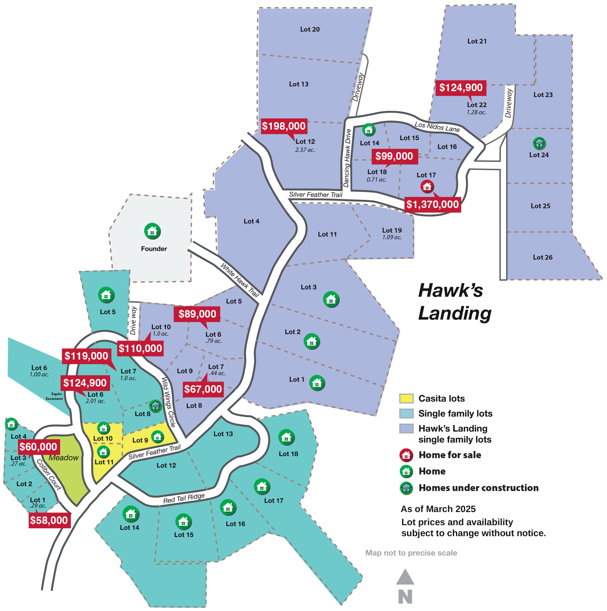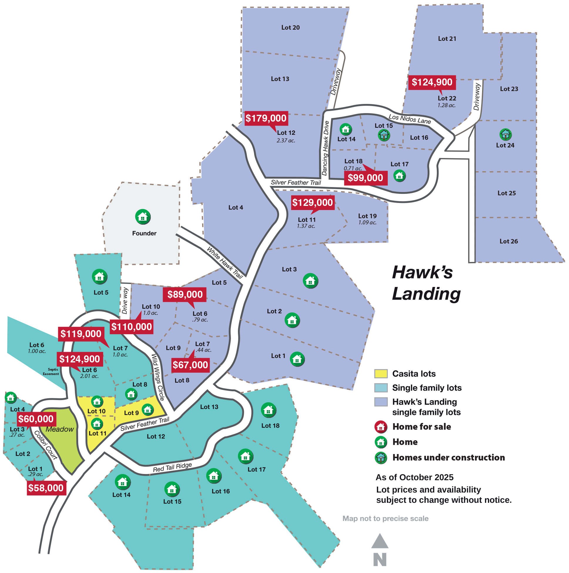 All eighteen lots in Phase I (turquoise/yellow on map) ranging in size from 1/4 to 2 acres were sold between 2004 to 2006.